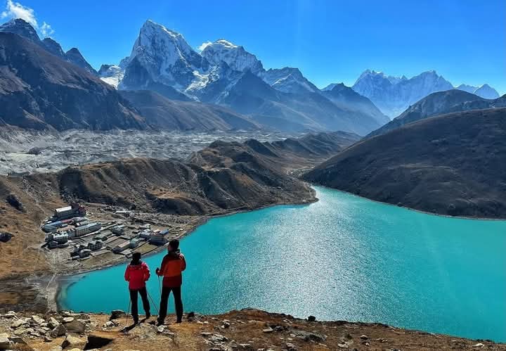 Gokyo Lake is a series of beautiful turquoise lakes in the heart of the Himalayas. The largest, Gokyo Cho, is considered sacred by the local people. You can spend time walking along the lake, enjoying reflections of snowy peaks, and exploring the small village nearby. Staying overnight here allows you to experience the peaceful atmosphere of the valley and prepare for the hike to Gokyo Ri the next day, which offers some of the best panoramic mountain views in the region.