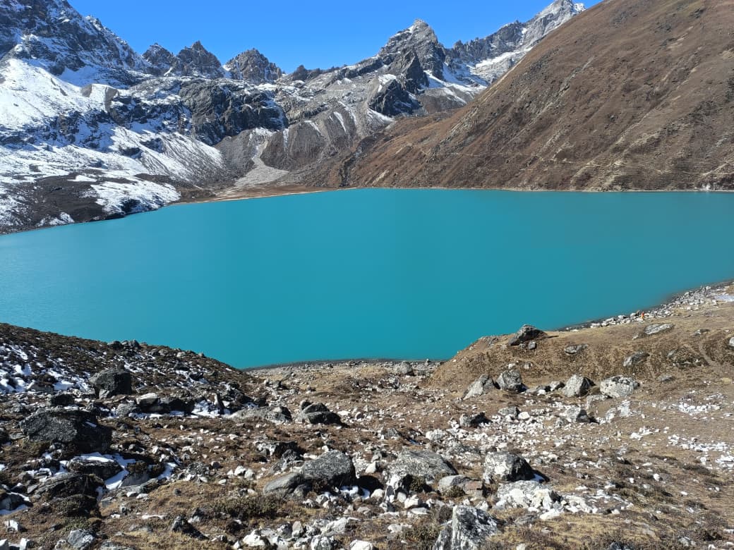 As you walk higher, you will notice the scenery changing. The forests slowly turn into rocky paths, and snowy peaks begin to surround you. The main attraction of this trek is the chain of Gokyo Lakes. These lakes are very calm and shine like mirrors under the sun. Among them, Gokyo Lake is the most famous and is believed to be holy. Many trekkers find this place peaceful and magical.