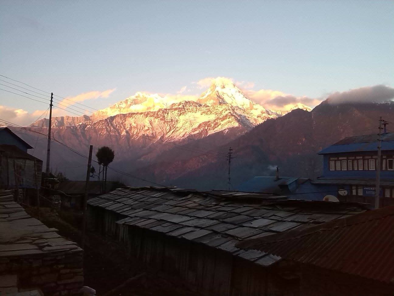 The path has both ups and downs but the scenery is peaceful. By afternoon, you reach Tadapani at 2,625 meters, a small settlement with close views of Annapurna South and Machhapuchhre. Overnight stay will be in a teahouse.