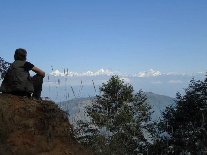 You can see the Himalayas, green forests, rhododendron flowers, small villages, and birds.